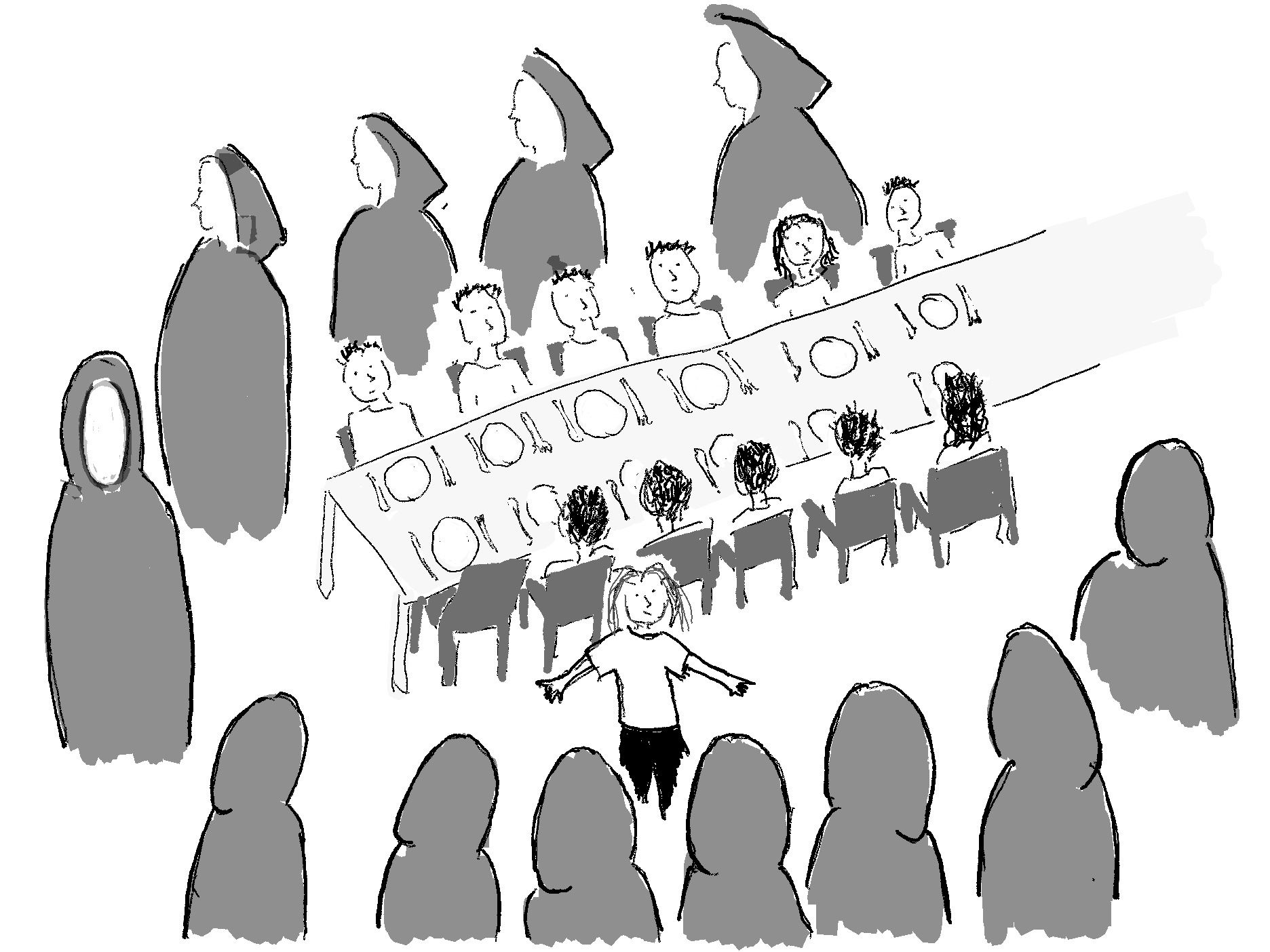 I’m at a conference dinner in a fancy university dining hall. Suddenly a line of men start walking in wearing black and white uniform/robes which give off a cultish, slightly military vibe. They envelop round the perimeter of the room. I stand up to leave the room. They tell me I cannot leave and block my exit.
